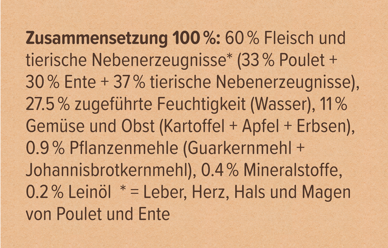 Zutatenzusammensetzung des Hunde-Nassfutters «Dose Ente» von ANiFiT